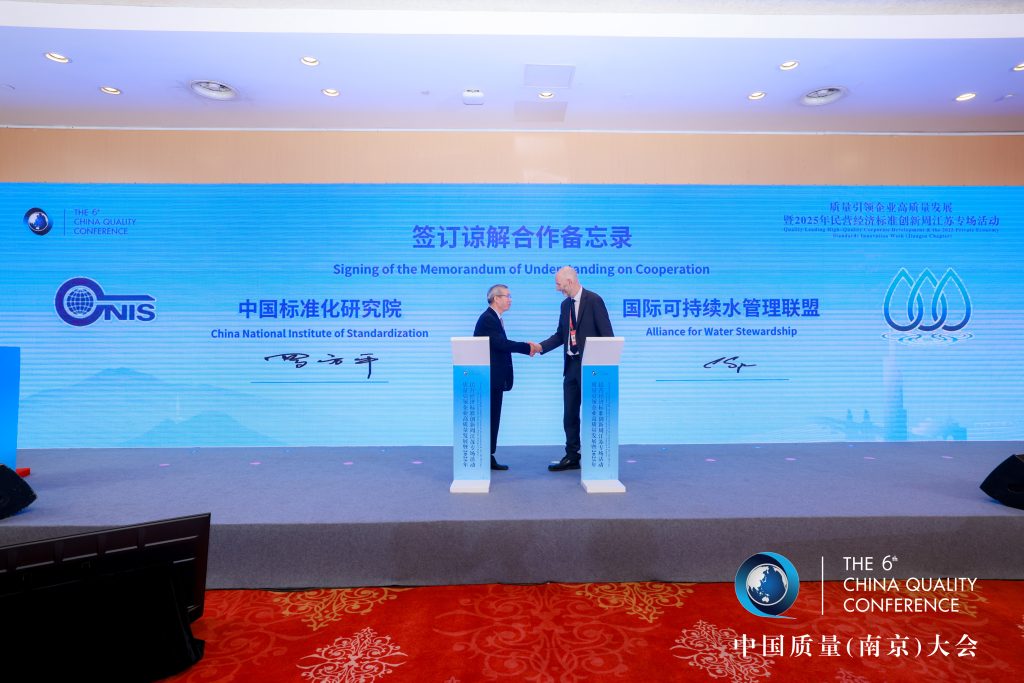 2025年9月16日,国际可持续水管理联盟(AWS)和中国标准化研究院(CNIS)——中国可持续水管理国家标准制定机构——在南京举办的第六届中国质量大会上签署了合作谅解备忘录